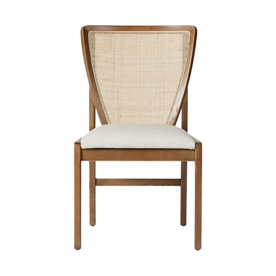เก้าอี้ทานข้าวไม้เนื้อแข็งพร้อมพนักพิงหวายถักและเบาะหุ้มผ้า, เก้าอี้ทานข้าวไม้ธรรมชาติทันสมัยสำหรับบ้านและร้านกาแฟ