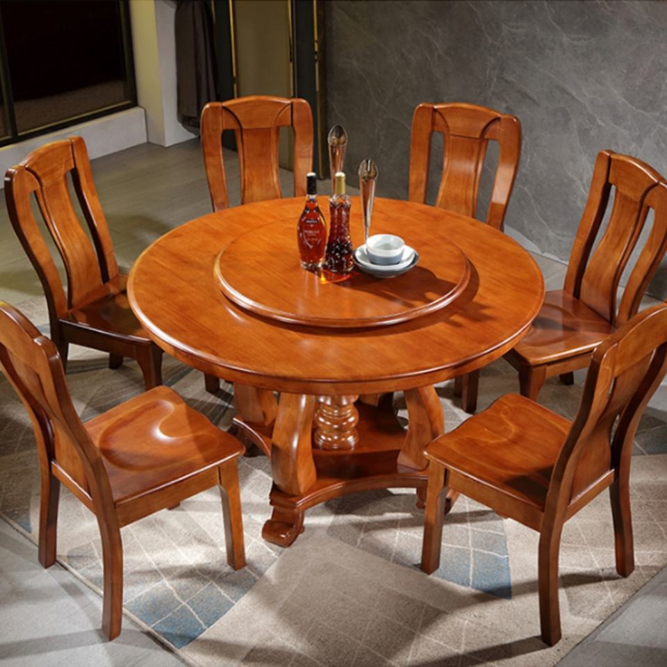 โต๊ะรับประทานอาหารไม้เนื้อแข็งพร้อมชุดเก้าอี้ โต๊ะรับประทานอาหารทรงกลม