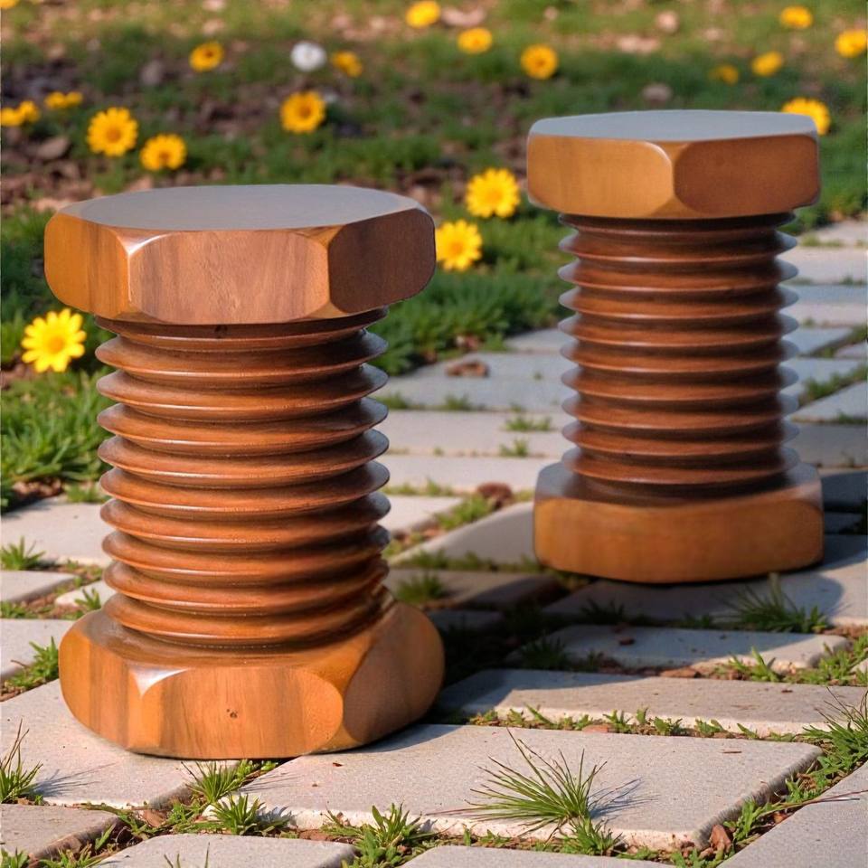 เก้าอี้สตูลไม้เนื้อแข็ง ทนทาน ทำมือ ขันสกรู
