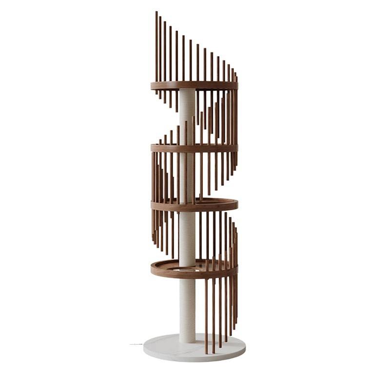 ต้นไม้แมวในบ้านไม้เนื้อแข็งอย่างดี เป็นมิตรกับสิ่งแวดล้อม ทนทาน | เตียงแมวแบบประหยัดพื้นที่พร้อมเสาปีนป่ายทำจากไซซอล คอนโดแมวแบบออลอินวัน