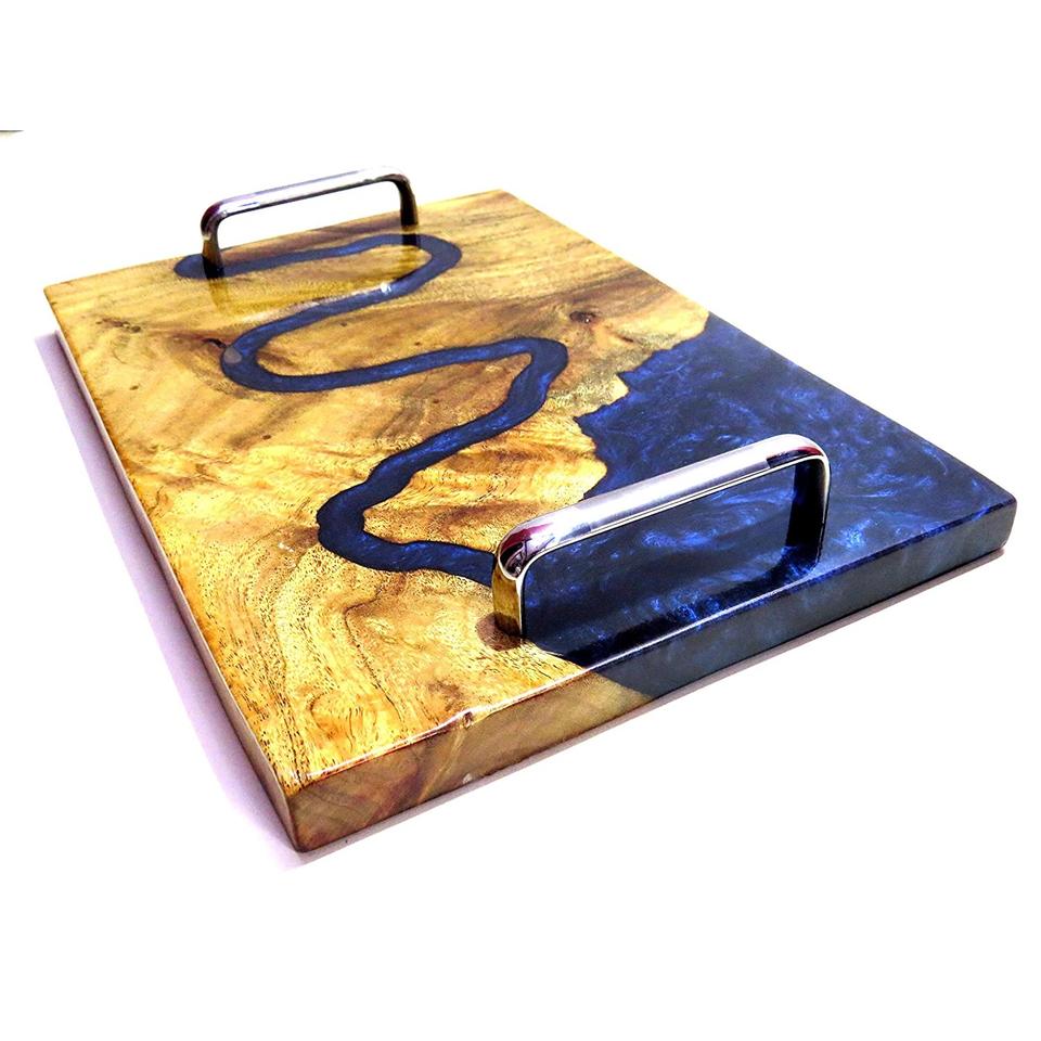 ถาดเสิร์ฟเรซินอีพ็อกซี่ไม้เนื้อแข็งแกะสลักยอดนิยมสำหรับเนื้อชีสและผักสำหรับใช้ในโรงแรมและห้องครัว
