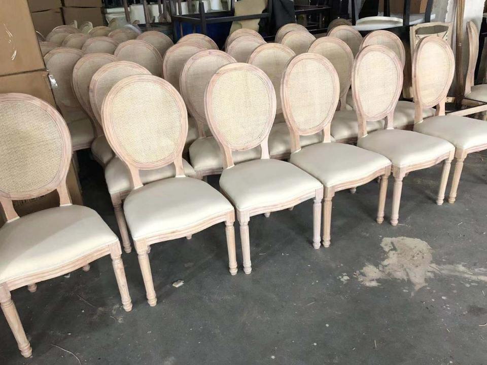 เก้าอี้ไม้เนื้อแข็งสไตล์ฝรั่งเศสแบบซ้อนได้ รุ่นหลุยส์ พนักพิงหวาย