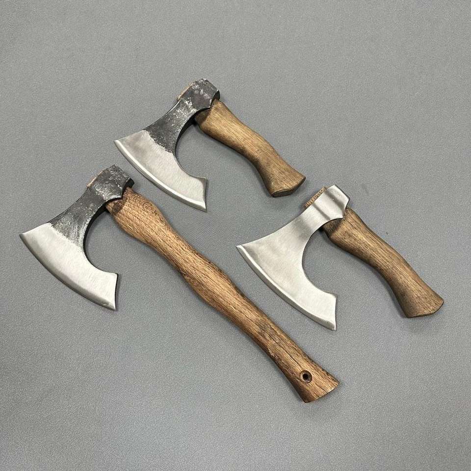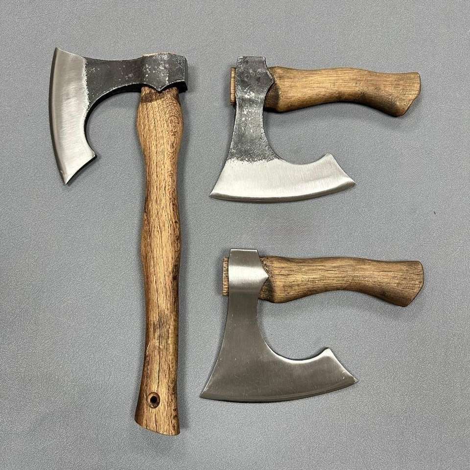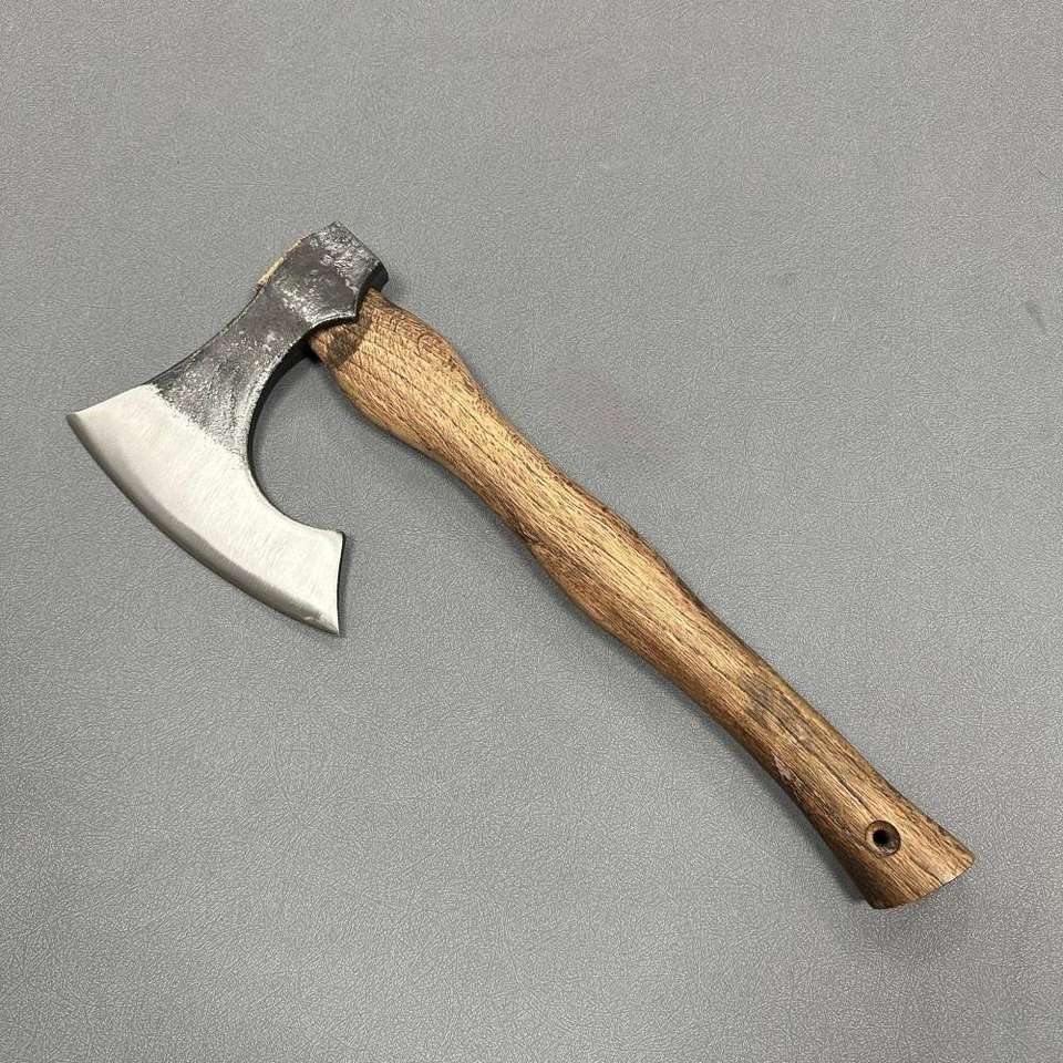 ขวานไวกิ้งด้ามไม้เนื้อแข็ง ขวานผ่าไม้ทำมือ ใบมีดเหล็กกล้าคาร์บอนสูง ขวานสำหรับล่าสัตว์ ตัด หั่น ซอย