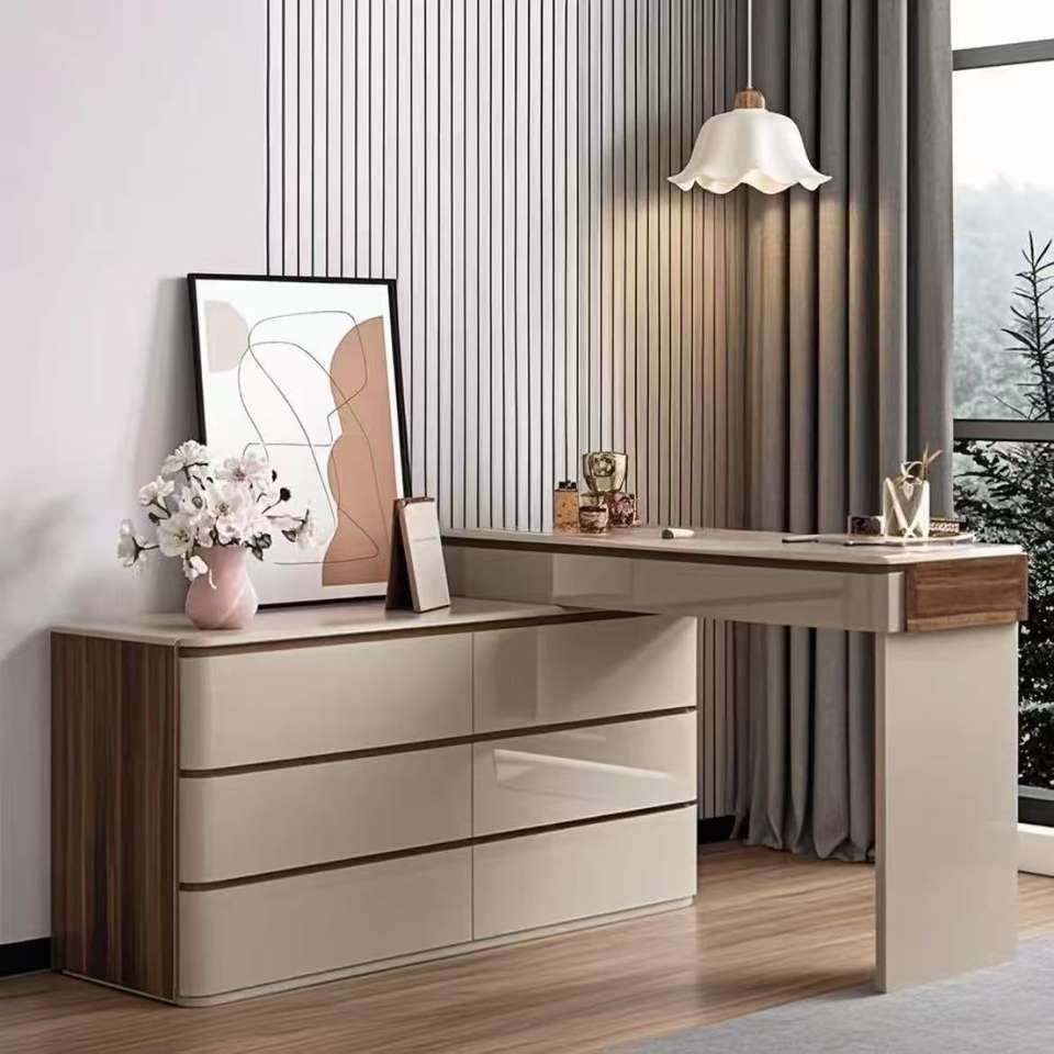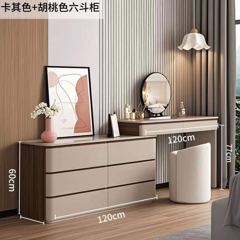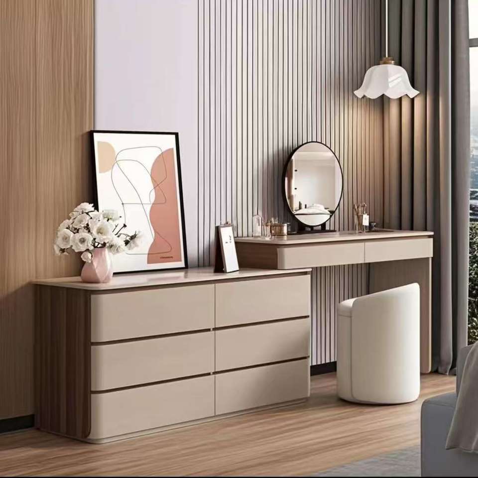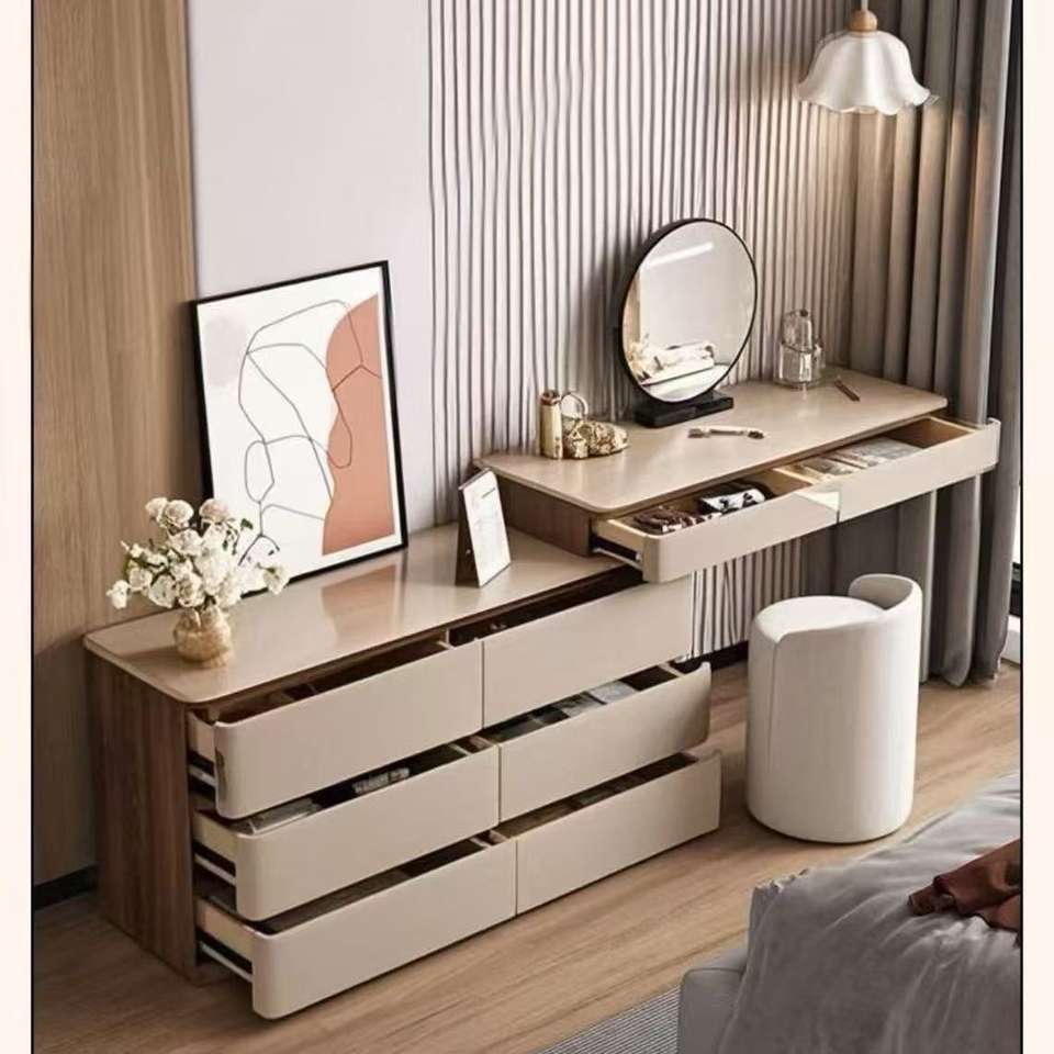 โต๊ะเครื่องแป้งไม้เนื้อแข็งสไตล์อิตาเลียนแบบมินิมอล พร้อมกระจก ตู้เก็บของ ห้องนอน โต๊ะเครื่องแป้งแบบขยายได้ ลิ้นชักหมุนได้