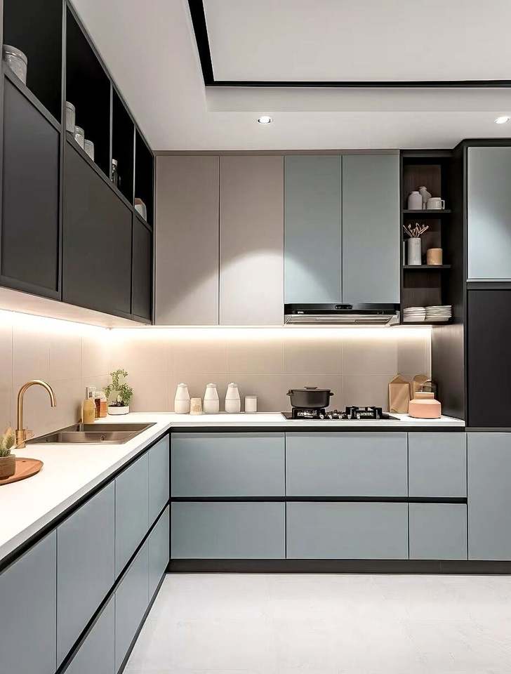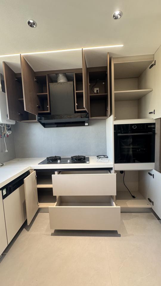 ตู้ครัวไม้เนื้อแข็งการออกแบบที่ทันสมัย