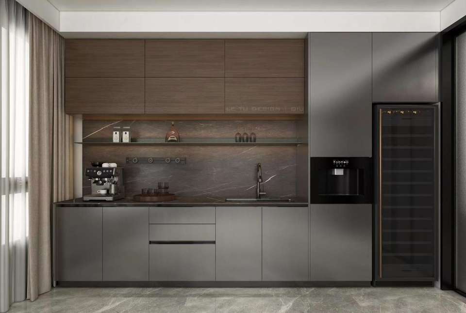 ตู้ครัวไม้เนื้อแข็งพร้อมชุดอ่างล้างจานบนเคาน์เตอร์หินอ่อน เฟอร์นิเจอร์ห้องรับประทานอาหารทันสมัย