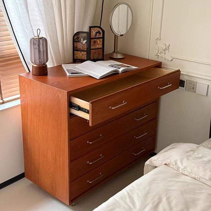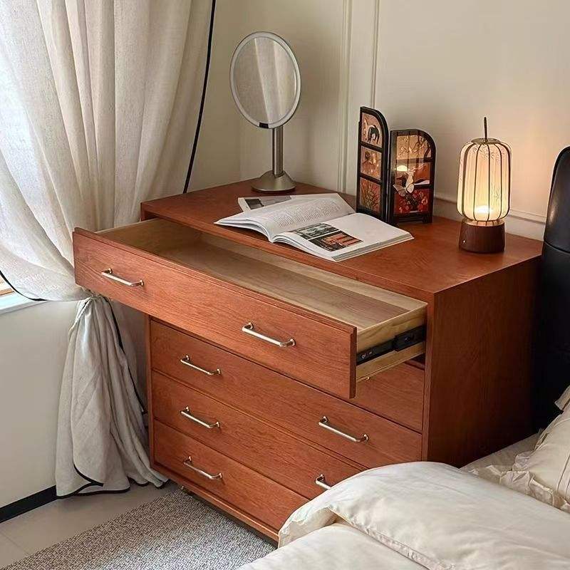 ตู้ลิ้นชักติดผนังไม้เนื้อแข็งสไตล์เรโทรกลางศตวรรษห้าลิ้นชักสำหรับเก็บของในห้องนอน
