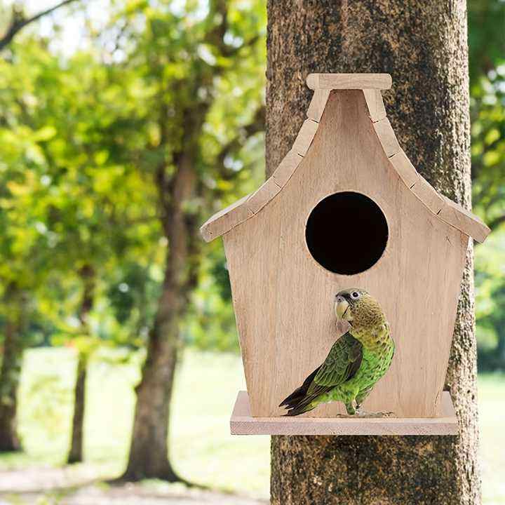 บ้านนกขนาดเล็กไม้เนื้อแข็งชุด DIY ของตกแต่งบ้านนกแก้วงานฝีมือสำหรับสัตว์เลี้ยงสำหรับเด็กบ้านนกไม้