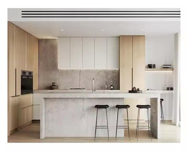 ตู้ครัวไม้เนื้อแข็งทันสมัยชุดพร้อมประกอบส่งตรงจากโรงงาน
