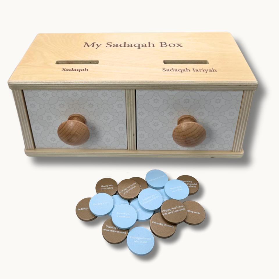กล่องใส่เหรียญแบบ Montessori sadaqah ทำจากไม้จริงของขวัญเพื่อการศึกษาสำหรับเด็กสอนแนวคิด sadaqah สำหรับ2-4 5-7ปี