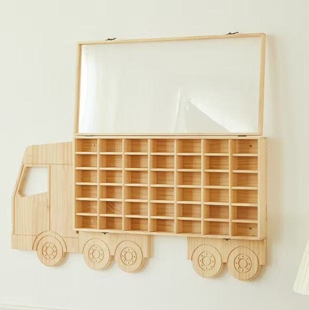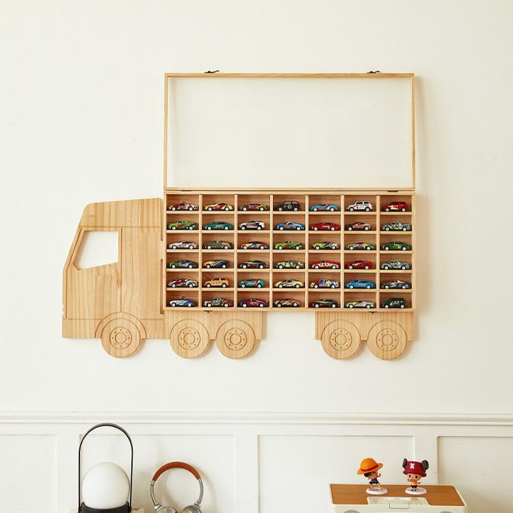 ชั้นวางของในรถยนต์แบบไม้จริงหลายช่อง ชั้นวางของติดผนังสำหรับเก็บของเล่น ชั้นวางของหลายชั้นสำหรับโชว์โมเดล กล่องสุ่ม Dumex ชั้นวางของแบบไม่ทอ