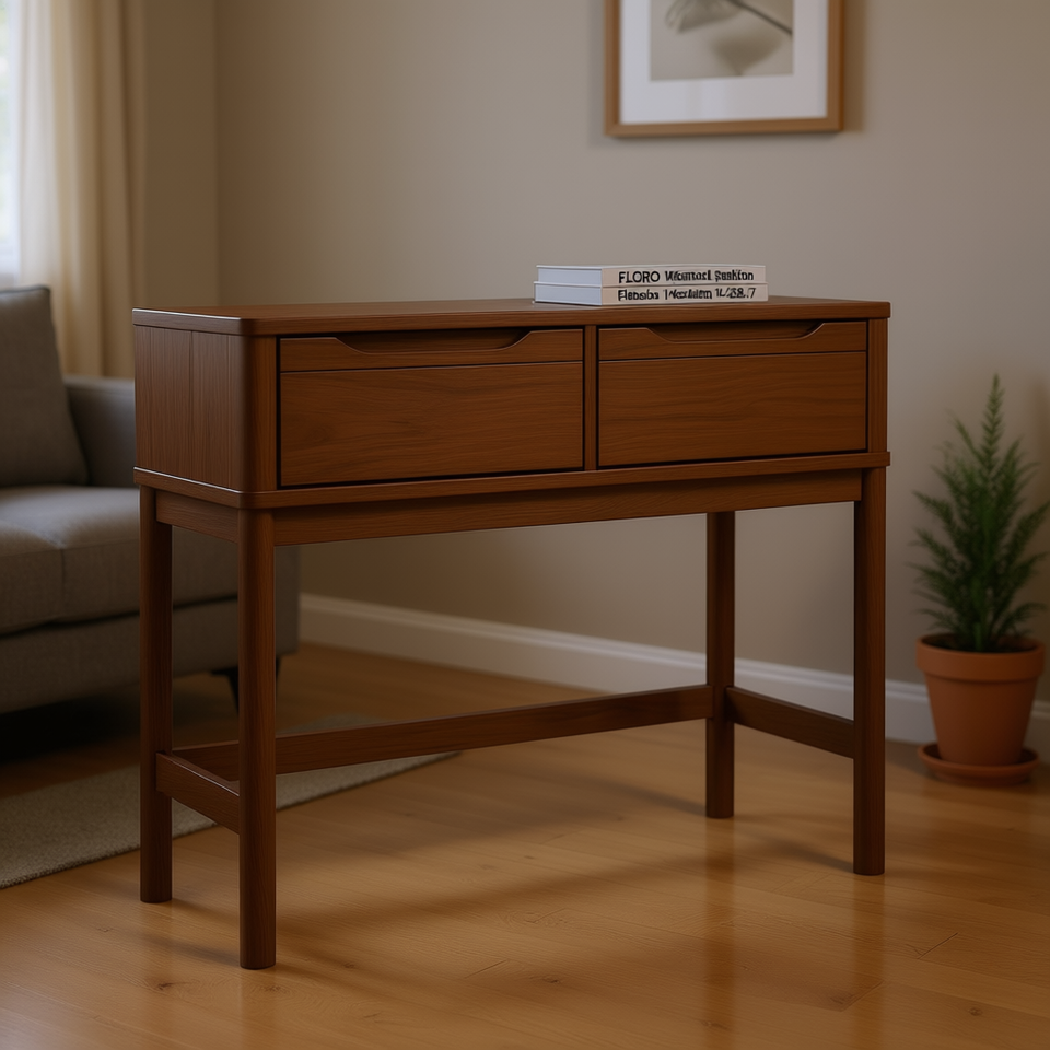 โต๊ะคอนโซลไม้สนแท้ 35.2x14.4x28.7 นิ้ว เฟอร์นิเจอร์ห้องนั่งเล่นพร้อมที่เก็บของ ดีไซน์มินิมอล