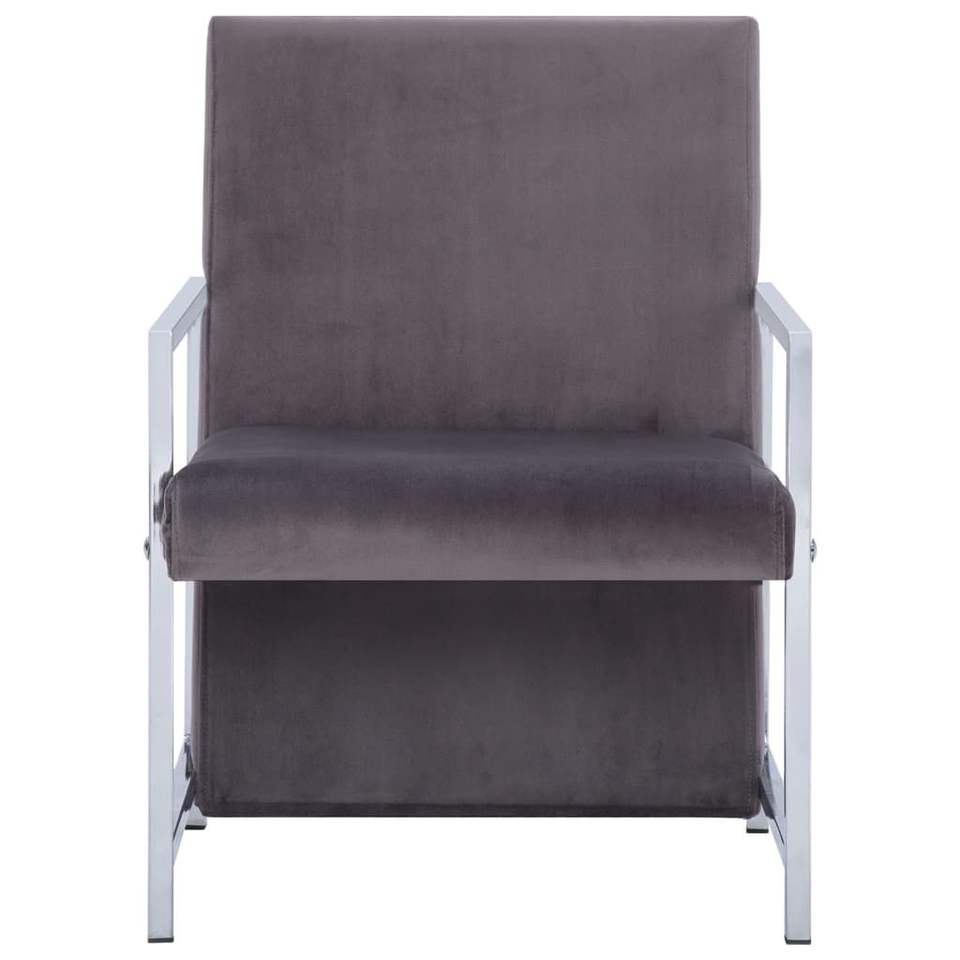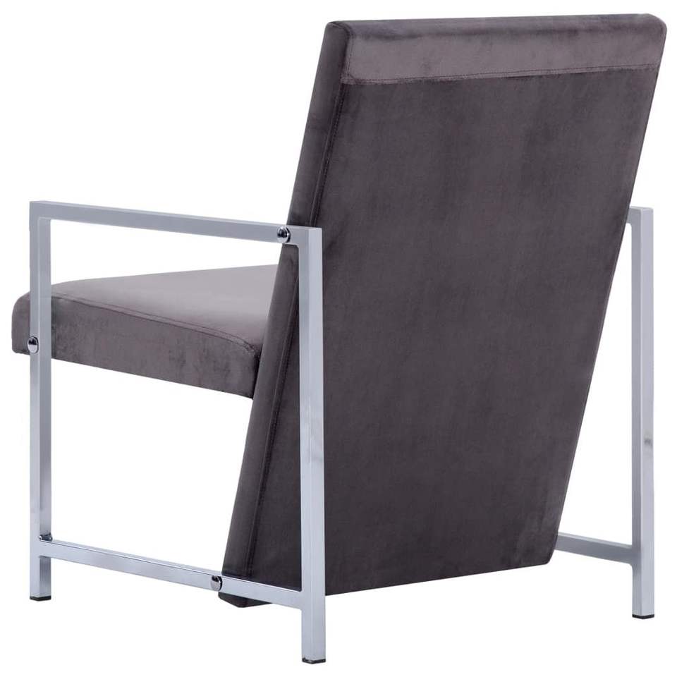 เก้าอี้ไม้จริงหุ้มไม้อัดพร้อมขาโครเมียมหุ้มกำมะหยี่สีเทาเข้มสำหรับห้องนั่งเล่น