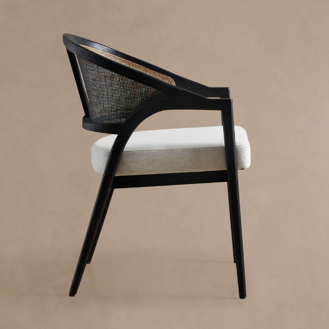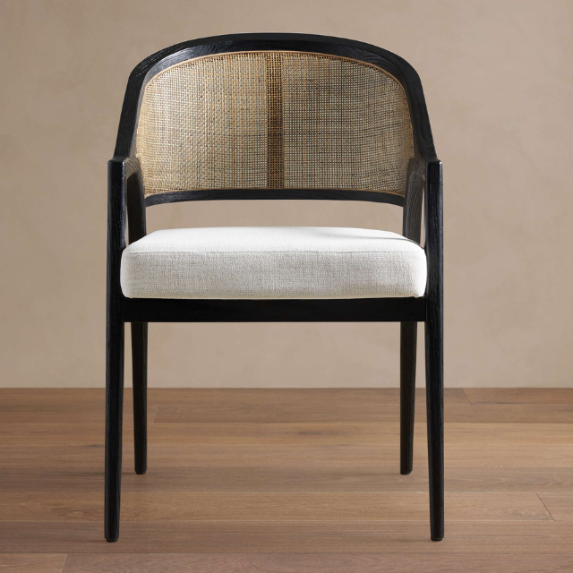 เก้าอี้รับประทานอาหารทำจากไม้หวายแข็งหุ้มเบาะนั่งที่ทันสมัยสำหรับห้องนั่งเล่นห้องรับประทานอาหารเฟอร์นิเจอร์คาเฟ่