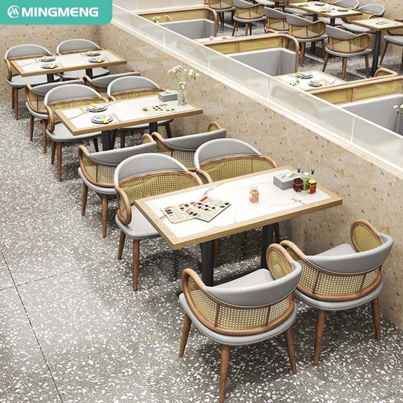 โซฟาบูธร้านอาหารไม้เนื้อแข็งพร้อมโต๊ะหินอ่อนและชุดเก้าอี้สำหรับร้านกาแฟ