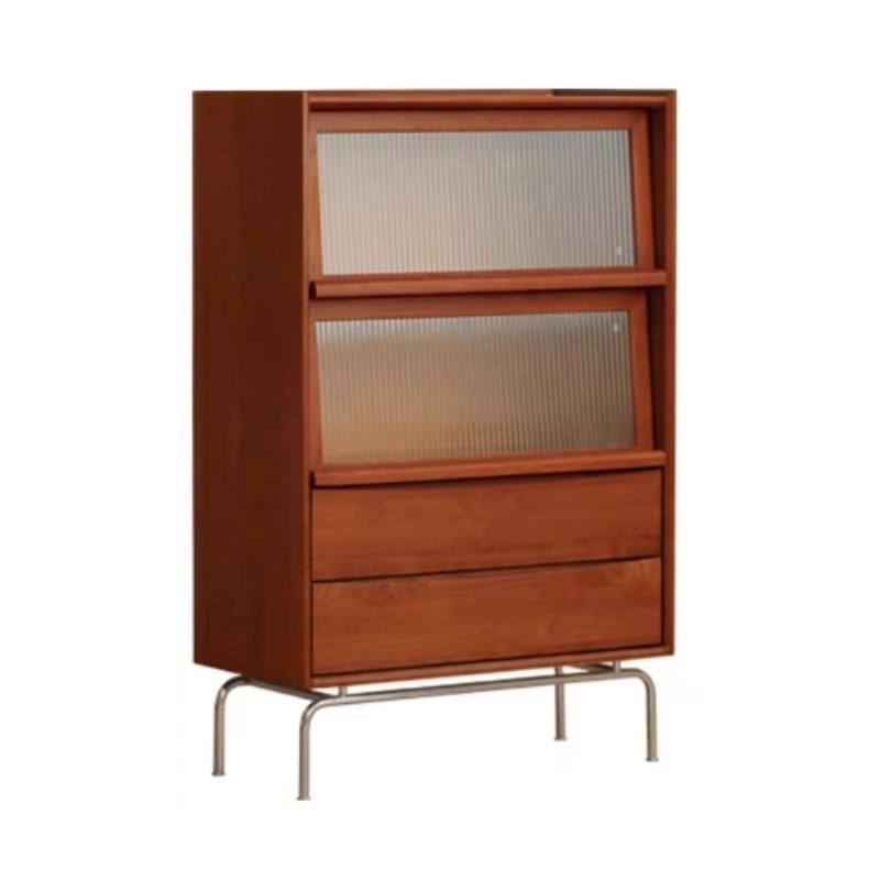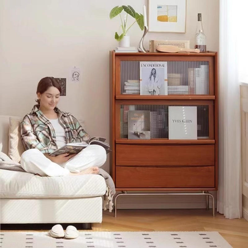 ตู้เก็บของไม้เนื้อแข็งสไตล์เรโทร 4 ลิ้นชัก 80 ซม. ตู้เก็บของไม้ยางพารา ตู้ข้างเตียงห้องนั่งเล่น ห้องนอน ตู้หนังสือสไตล์นอร์ดิก