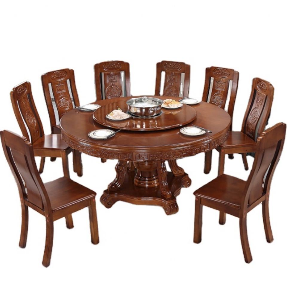 โต๊ะรับประทานอาหารทรงกลมไม้เนื้อแข็งพร้อมชุดเก้าอี้และโต๊ะหมุน