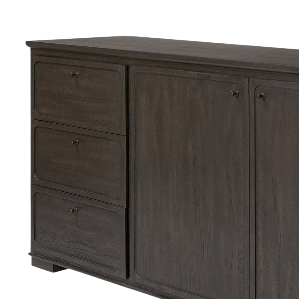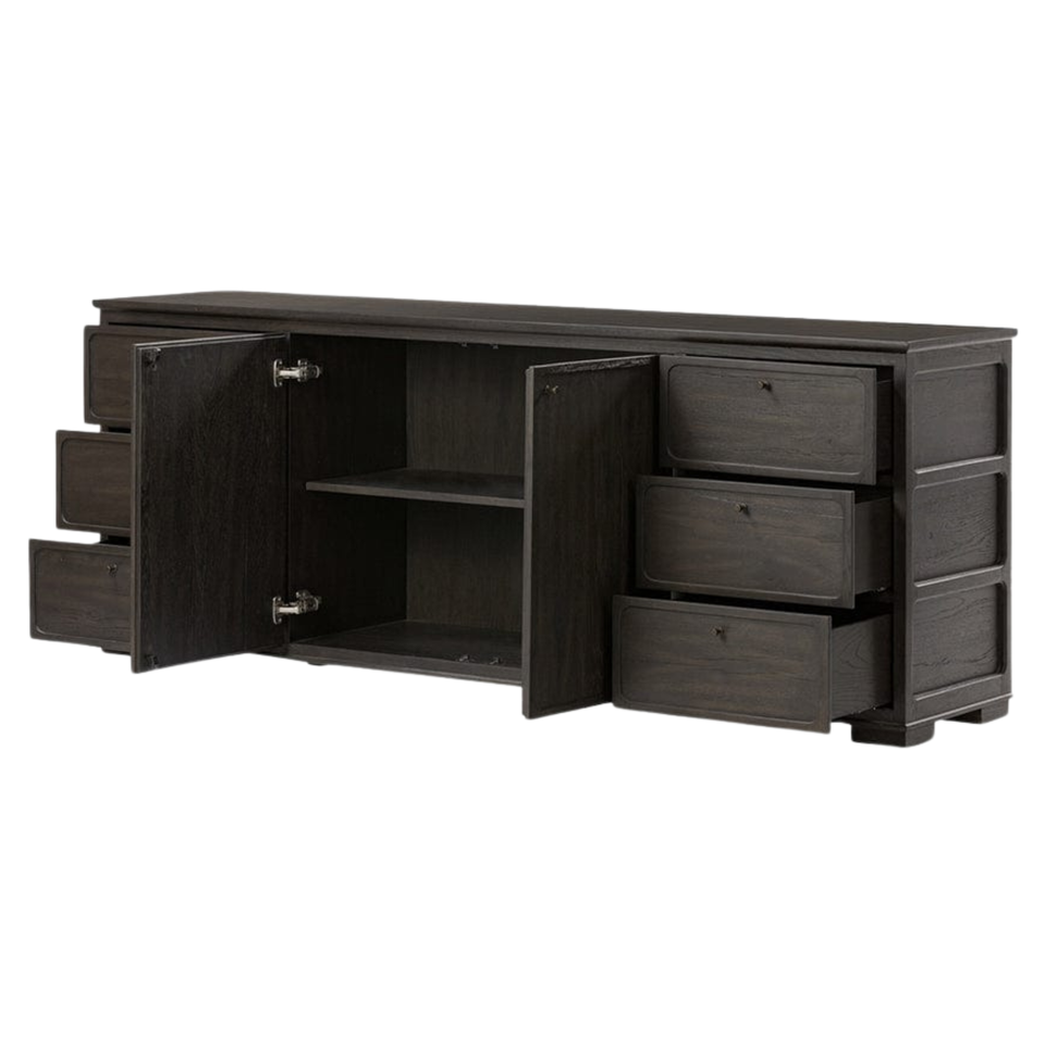 ตู้ไซด์บอร์ดไม้เนื้อแข็งพร้อมช่องเก็บของแบบสองบานและลิ้นชักด้านหน้าเรียบเนียนสำหรับจัดระเบียบห้องนั่งเล่นและห้องรับประทานอาหาร