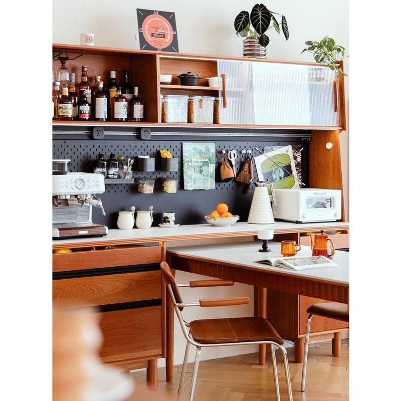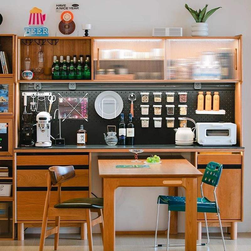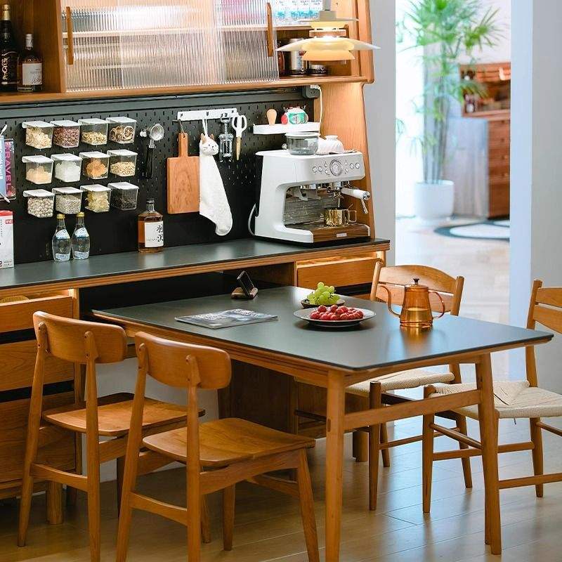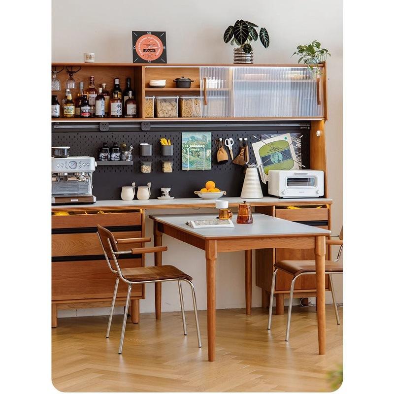 ตู้เก็บของไม้เนื้อแข็งพร้อมโต๊ะรับประทานอาหารสไตล์ญี่ปุ่นที่ทันสมัยเรียบง่ายเฟอร์นิเจอร์ห้องนั่งเล่นอเนกประสงค์