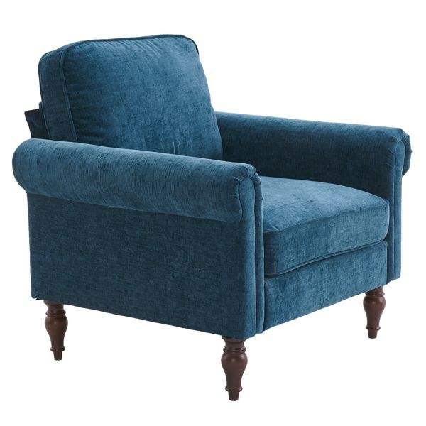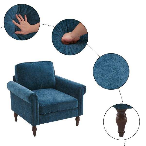 โซฟาเดี่ยวทำจากไม้จริงเท้าทรงน้ำเต้าและที่เท้าแขนแบบโค้งในร่มโทนสีฟ้า-เขียวสำหรับห้องนั่งเล่น