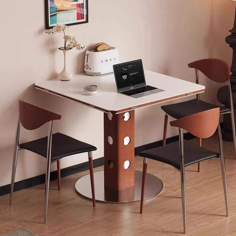 โต๊ะรับประทานอาหารพับได้ทรงสี่เหลี่ยมทำจากไม้เนื้อแข็งพร้อมท็อปหินสำหรับพื้นที่ขนาดเล็ก