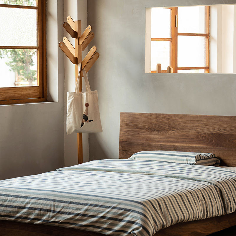 เตียงนอนไม้จริงทรงสี่เหลี่ยมขนาดใหญ่ 1.5 ม. และ 1.8 ม. สำหรับห้องนอนใหญ่