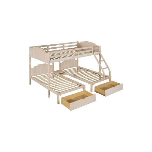 เตียงสองชั้นแบบเต็มตัวทำจากไม้กำมะหยี่ดีไซน์แบบดั้งเดิมทำจากไม้เนื้อแข็งเตียงสองชั้นพร้อมลิ้นชักและรั้ว