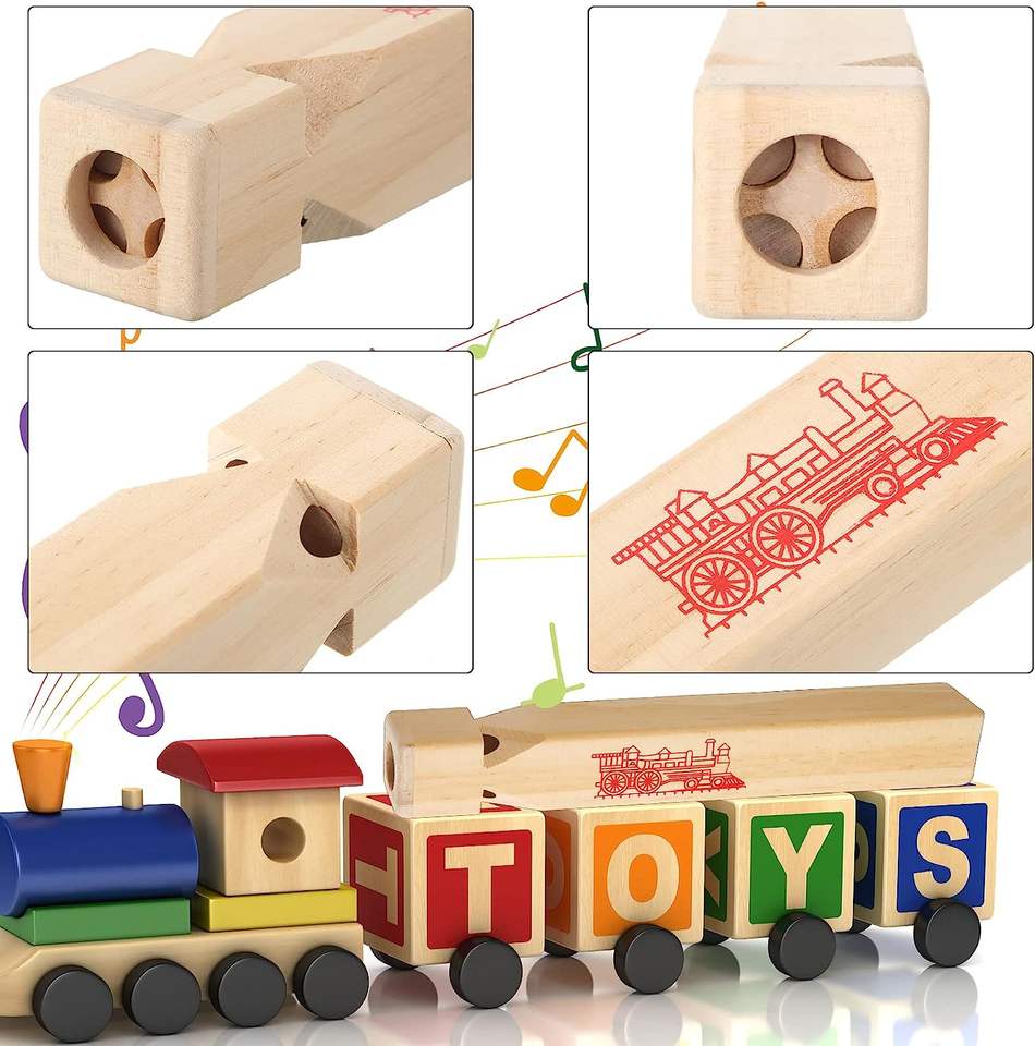 นกหวีดรถไฟไม้บรรจุของเล่นจำนวนมาก