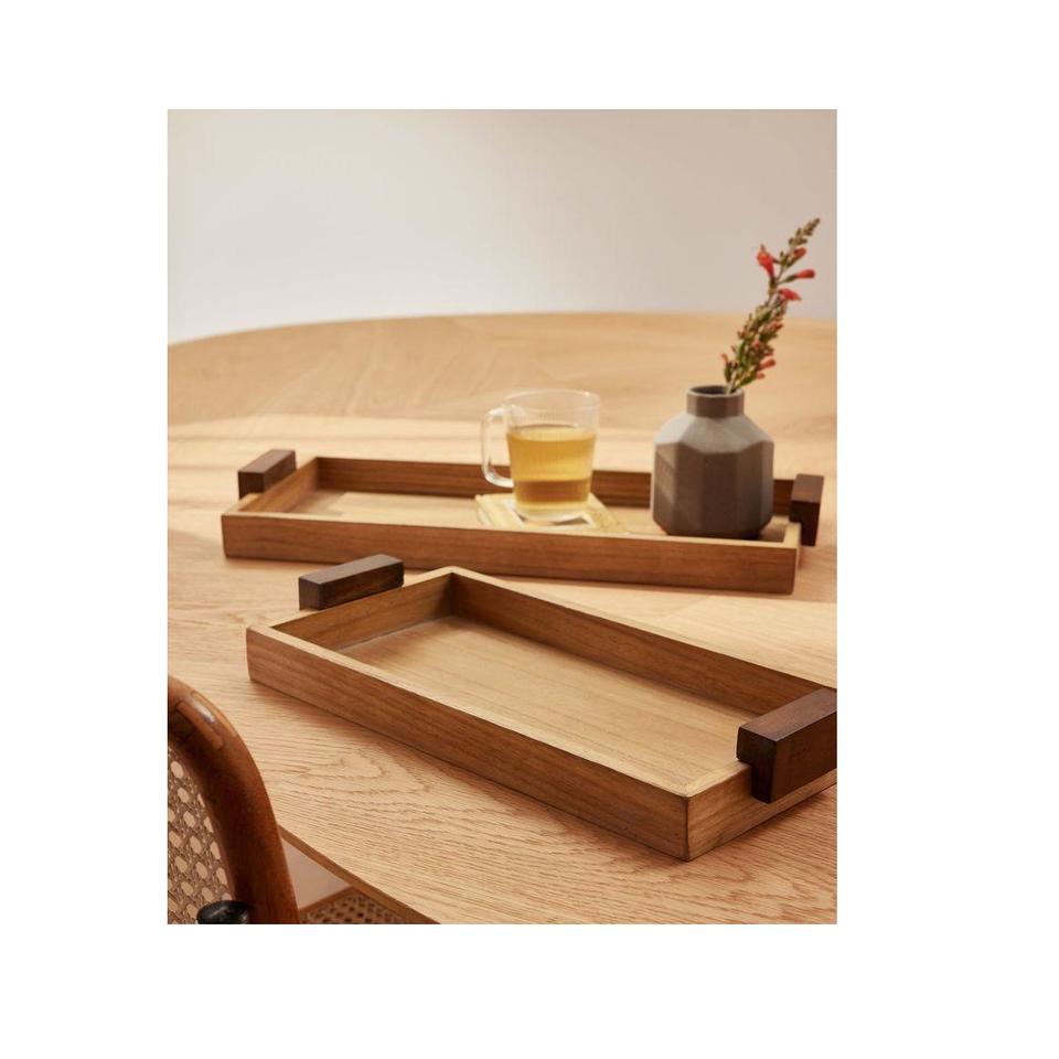 ถาดไม้เนื้อแข็ง ถาดไม้พรีเมียมสำหรับชา ถาดขนาดเล็กสำหรับผลไม้ ขนมขบเคี้ยว ถั่ว ของหวาน จานใส่ของบนโต๊ะ ภาชนะจัดเก็บบนโต๊ะ