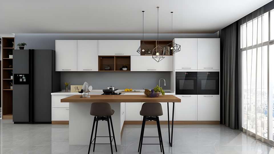 ไม้วีเนียร์ไม้จริงไม้โอ๊ควีเนียร์สีขาวแบบเต็มตู้ห้องครัวแบบแยกส่วนประตูดีไซน์ใหม่หรูหรา
