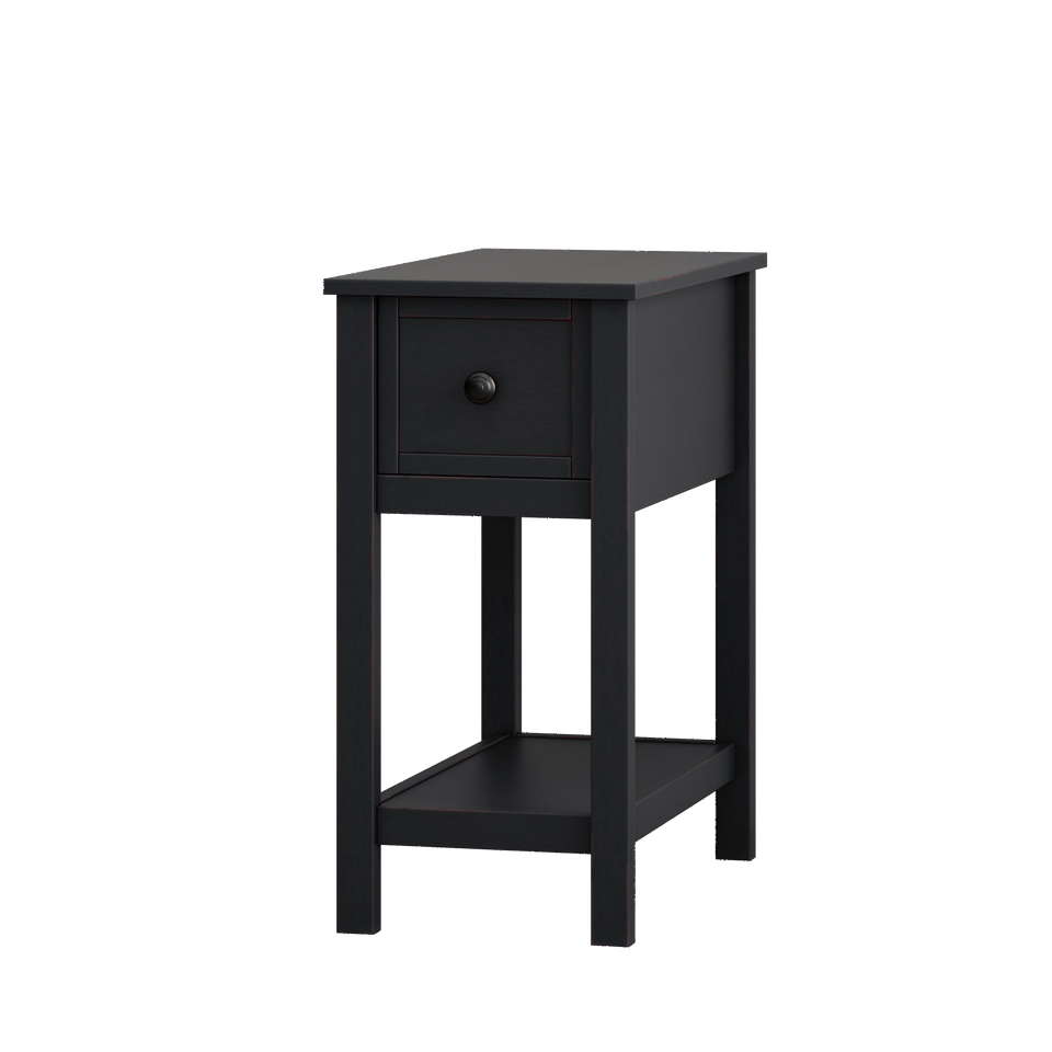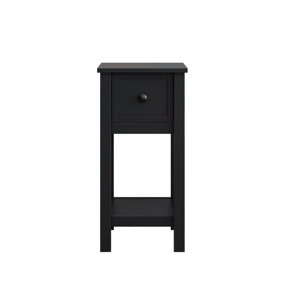 Solid Wood Veneer Nightstand with 1 Drawer and 1 Fixed Shelf Space-Saving Storage for Living Room