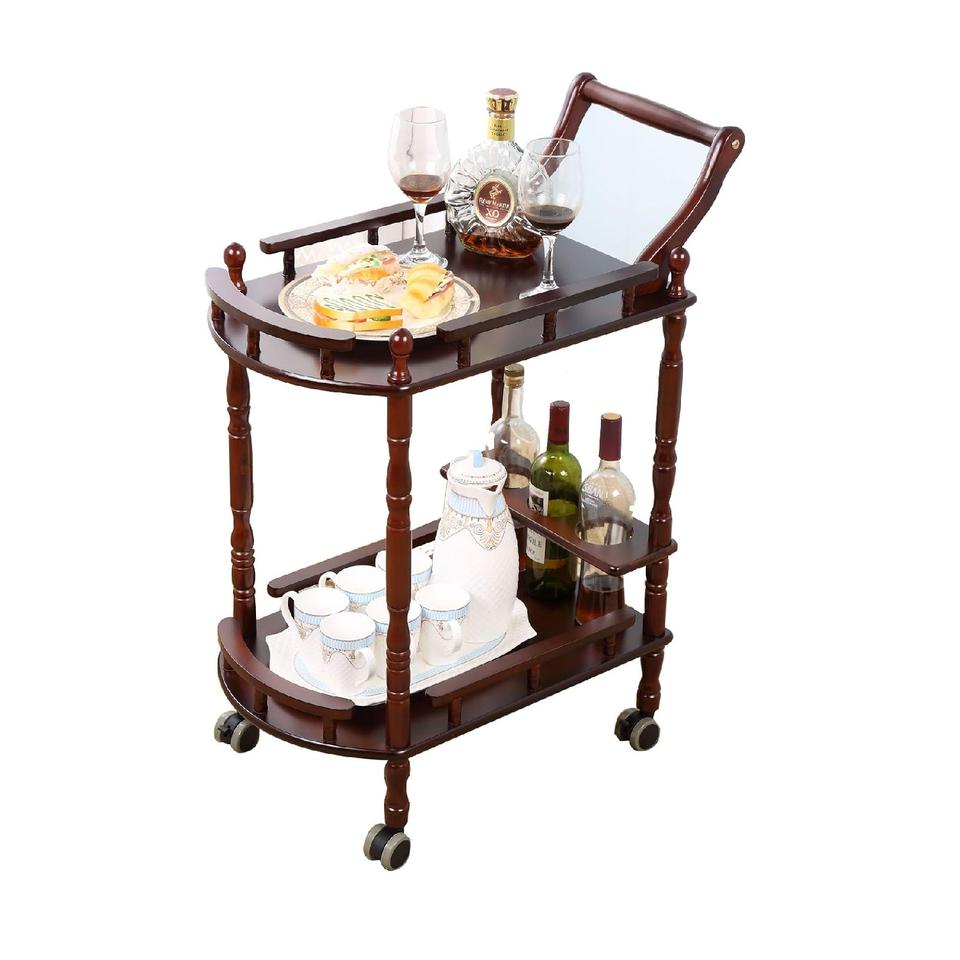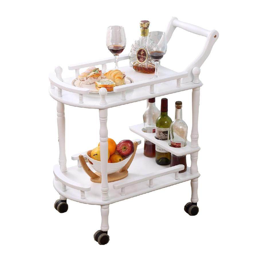 Solid Wood White Customised Bar Cart with Wheels 2-Layer Wine Mobile Trolley Storage Rack with Bottle Rack Mobile Food Cart