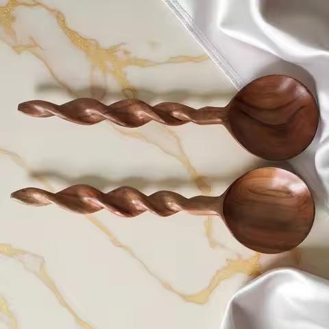 ช้อนไม้เนื้อแข็งสำหรับเสิร์ฟอาหาร ช้อนทำอาหารสำหรับซอส ข้าวแกง ซุป อุปกรณ์ทำอาหารจากไม้ธรรมชาติสำหรับร้านอาหารและครัวบ้าน