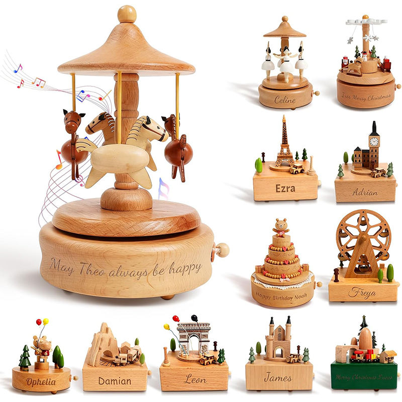 กล่องดนตรีม้าหมุนไม้เนื้อแข็ง