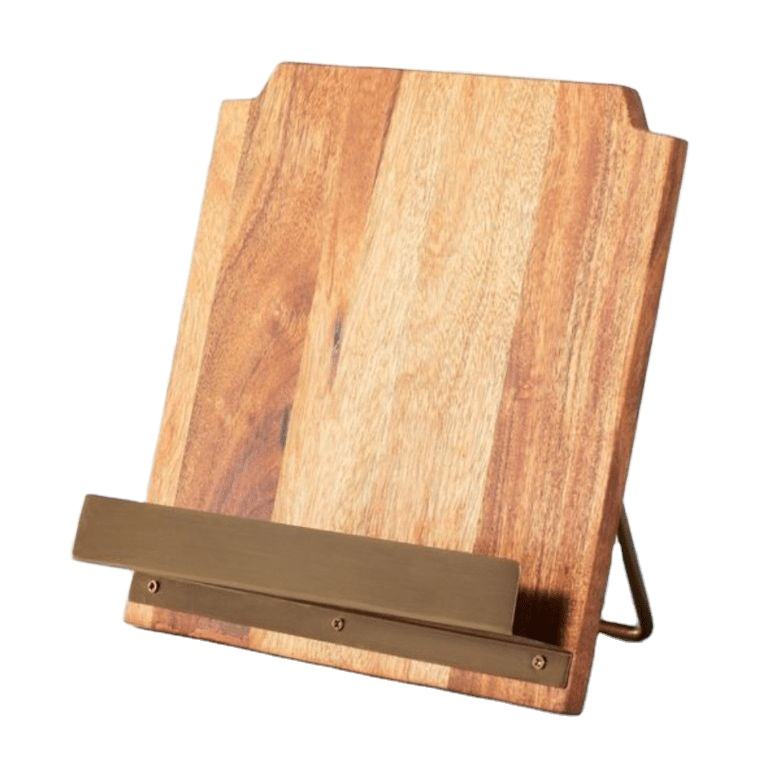 ที่วางตำราอาหารไม้เนื้อแข็งและทองเหลือง ที่วางตำราอาหารในครัว ชั้นวางโชว์บนเคาน์เตอร์ระดับพรีเมียม ที่วางตำราอาหารทำมือจากไม้