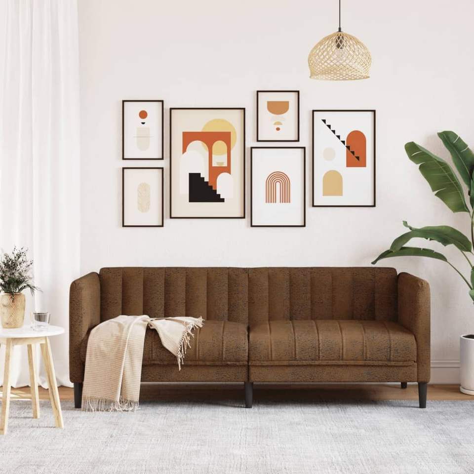 Solid Wood and Plywood Sofa in Brown Faux Suede Leather (100% Polyester) for Living Room