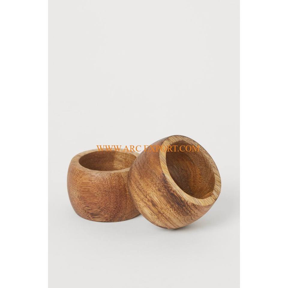 ชุดแหวนรองผ้าเช็ดปากทรงกลมทำจากไม้จริง2ชิ้นสำหรับงานแต่งสำหรับงานปาร์ตี้สำนักงานคาเฟ่โรงแรม