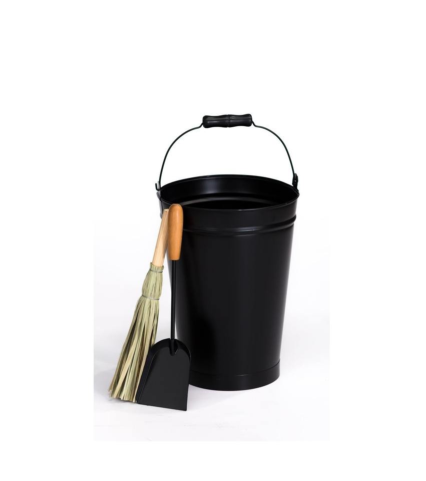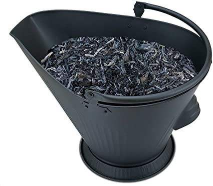 ถังถ่านหินเหล็กสีดำทึบที่มีด้านเสริมและที่จับโลหะที่แข็งแรงเหมาะสำหรับเก็บฟืนถ่านหิน