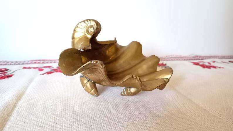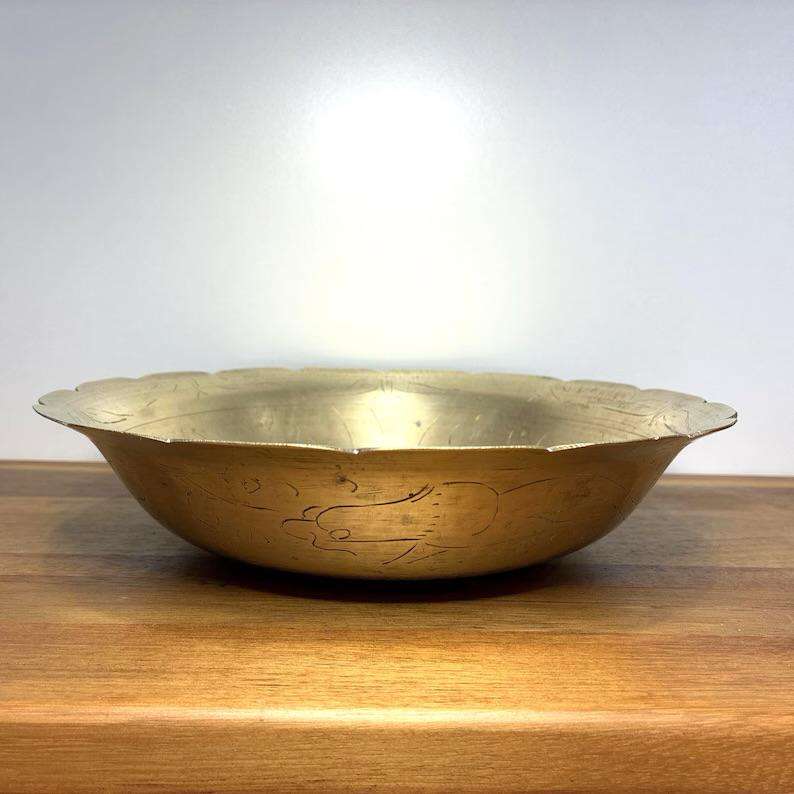 ชามผลไม้ทองเหลืองแข็งที่มีดีไซน์หรูหราและมีฐานที่มั่นคงเหมาะสำหรับการแสดงตรงกลางห้องรับประทานอาหารหรือห้องนั่งเล่น