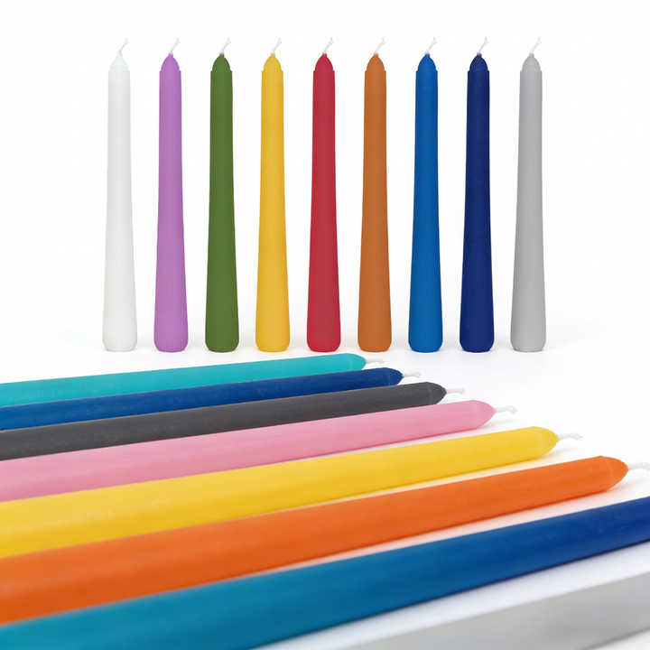 เทียนแท่งสีพื้น สีทอง สีเบอร์กันดี สีพลัมเบอร์รี่ สีเขียวมะกอก สีน้ำเงินกรมท่า สีครีม สีส้มอมม่วง สีม่วงพาสเทล สีเหลืองอ่อน สีม่วงอ่อนพาสเทล สำหรับเทศกาลอะเวนท์