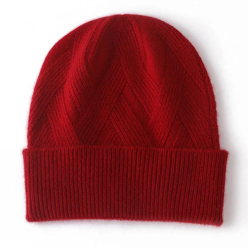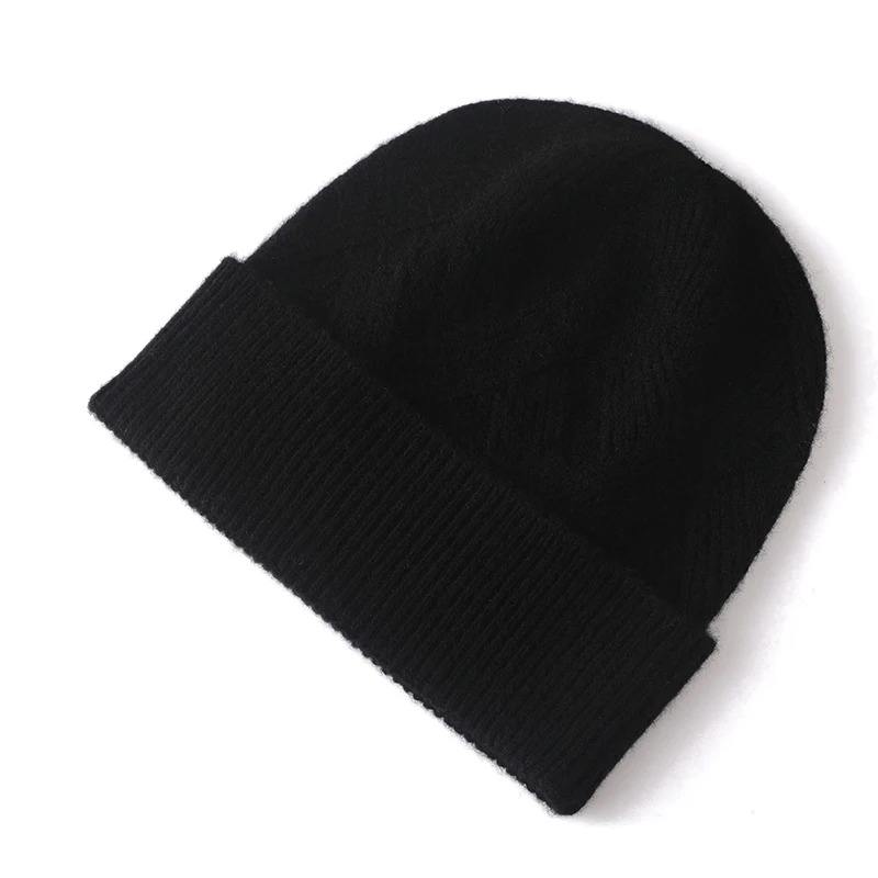 หมวกขนสัตว์แท้สำหรับผู้ชายหมวกขนสัตว์อบอุ่นฤดูใบไม้ร่วงฤดูหนาวหมวกผู้ใหญ่หมวกบีนนี่ถักใหม่หรูหรา