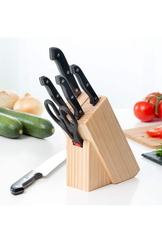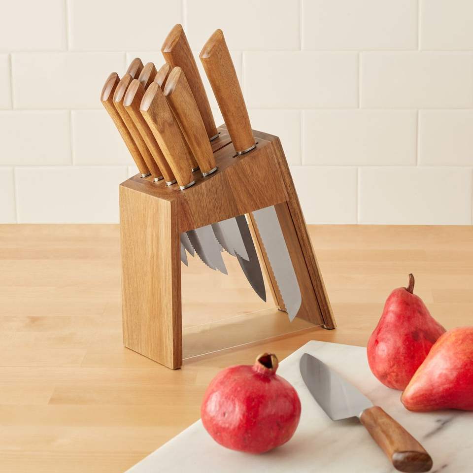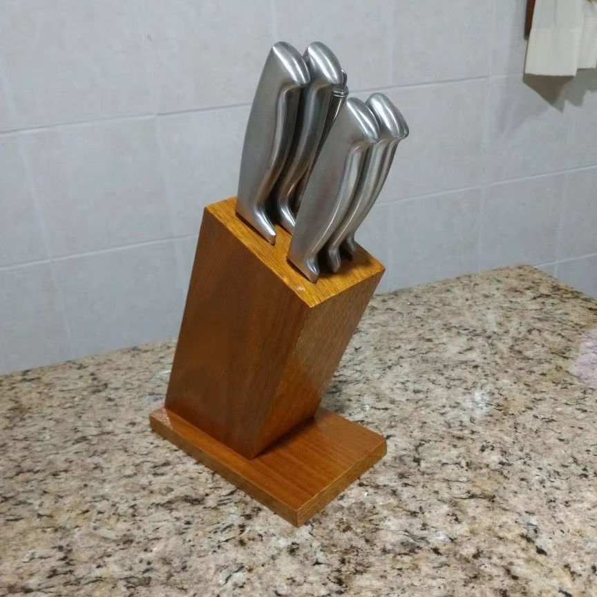 ที่วางมีดไม้แข็งพร้อมฐานที่แข็งแรงและขัดเงาที่เพิ่มฟังก์ชันการทำงานและความสง่างามให้กับการตกแต่งห้องครัว