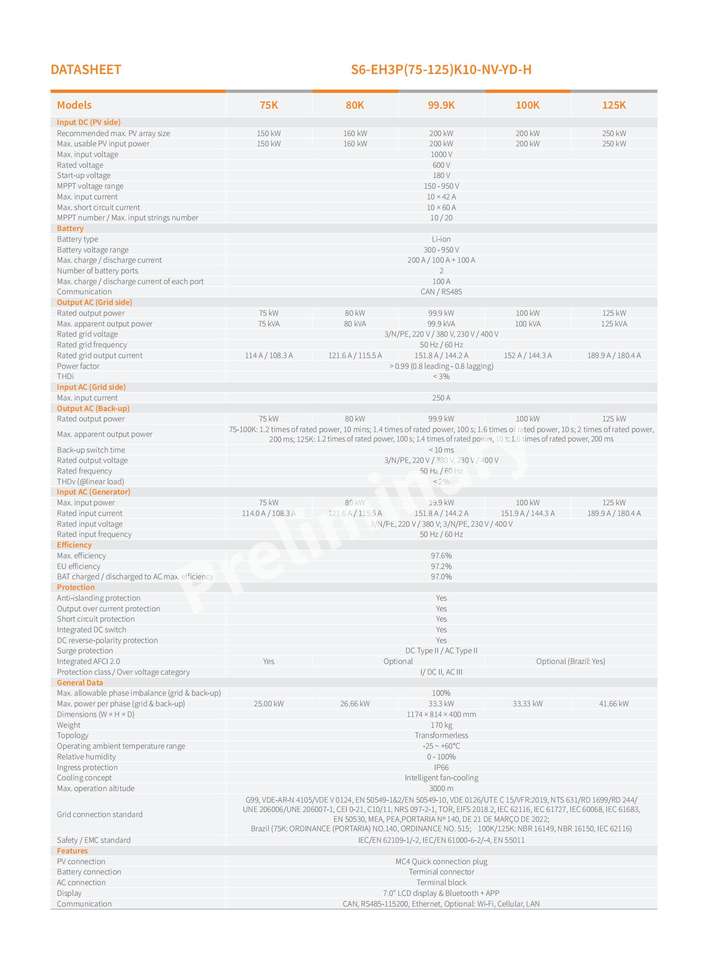 Safety / EMC standard:IEC/EN 62109-1/-2, IEC/EN 61000-6-2/-4, EN 55011