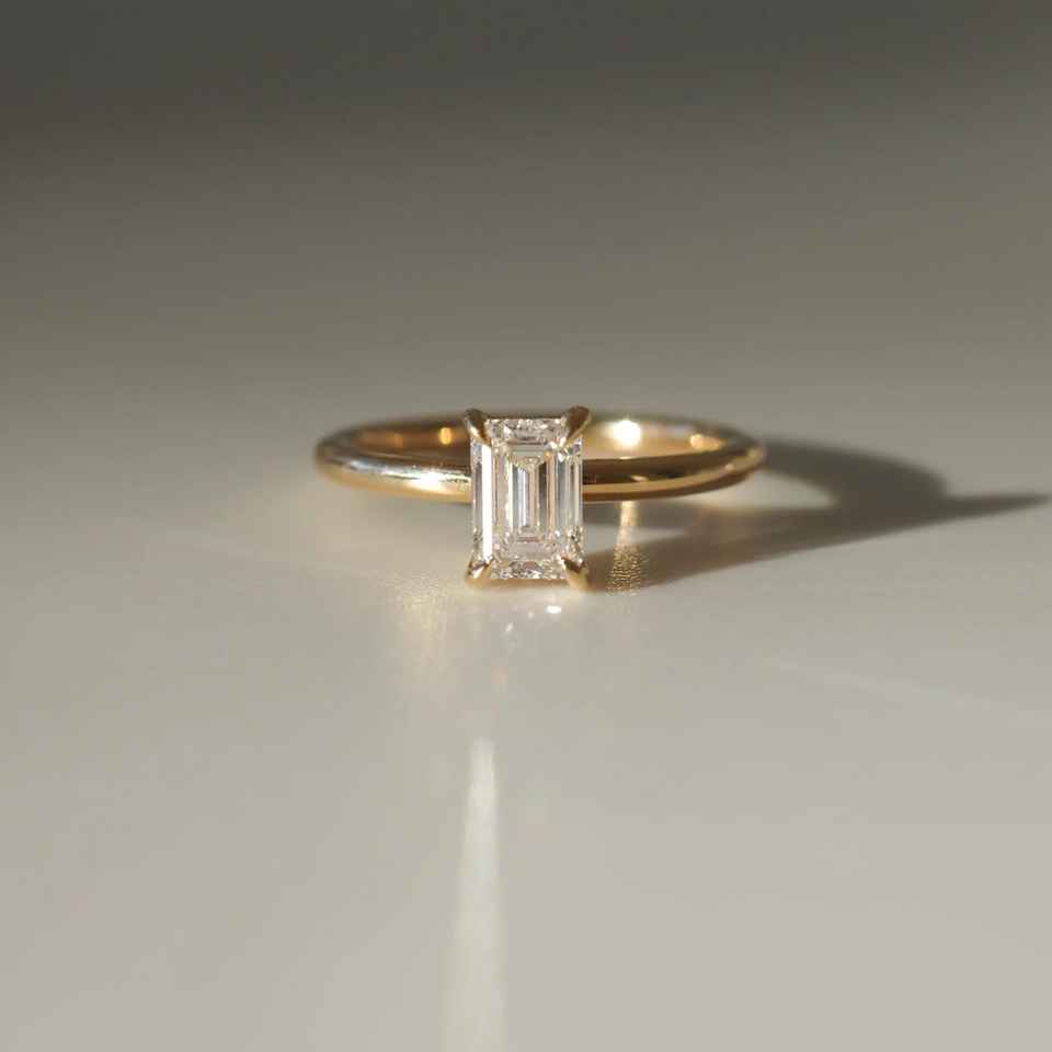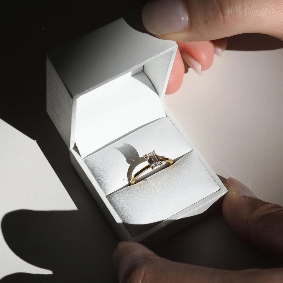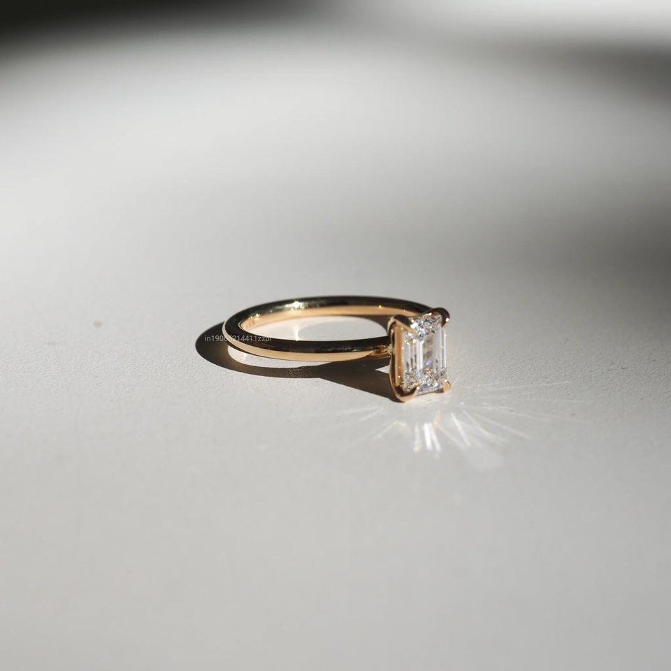 แหวนหมั้นเพชรแบบมินิมอลสำหรับผู้หญิงแหวนหมั้นเพชรแบบคลาสสิก0.77กะรัตมรกตตัดเพชรแบบมินิมอล