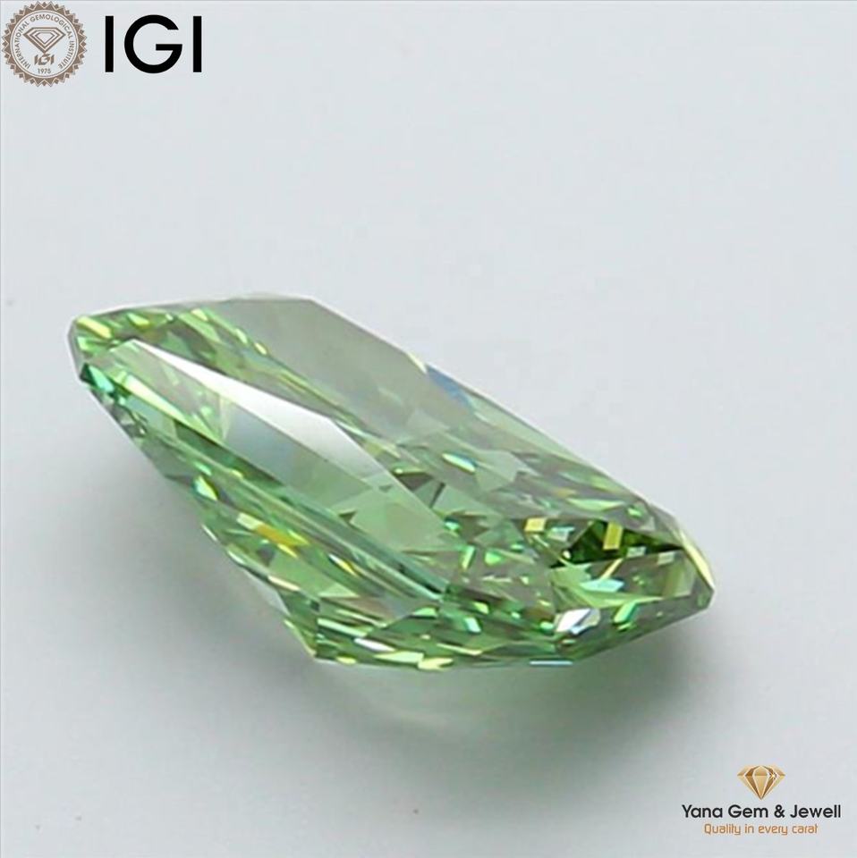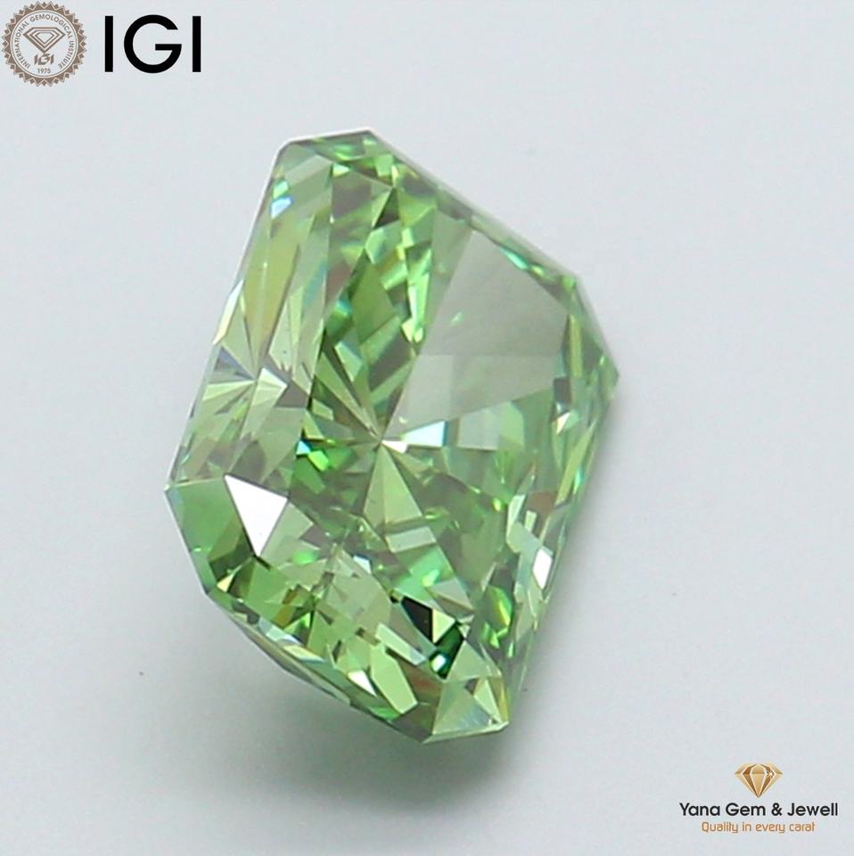 เพชรทรงโซลิแทร์ 2.00 กะรัต เจียระไนแบบเรเดียนท์ สีเขียวแฟนซีสดใส ความสะอาดระดับ VS2 พร้อมใบรับรอง IGI