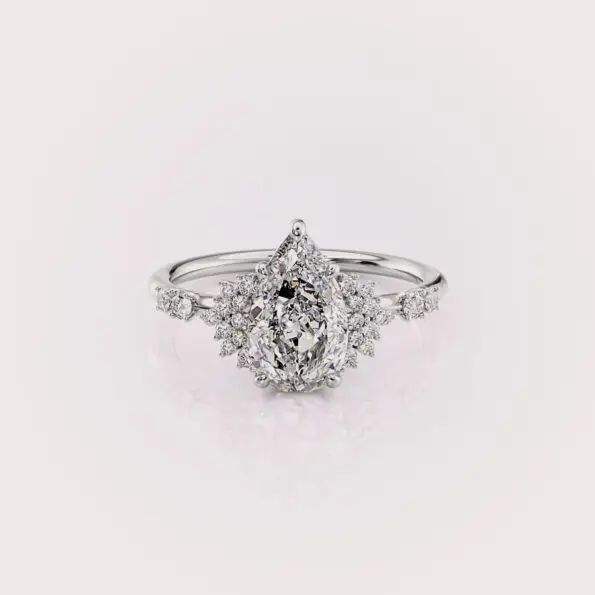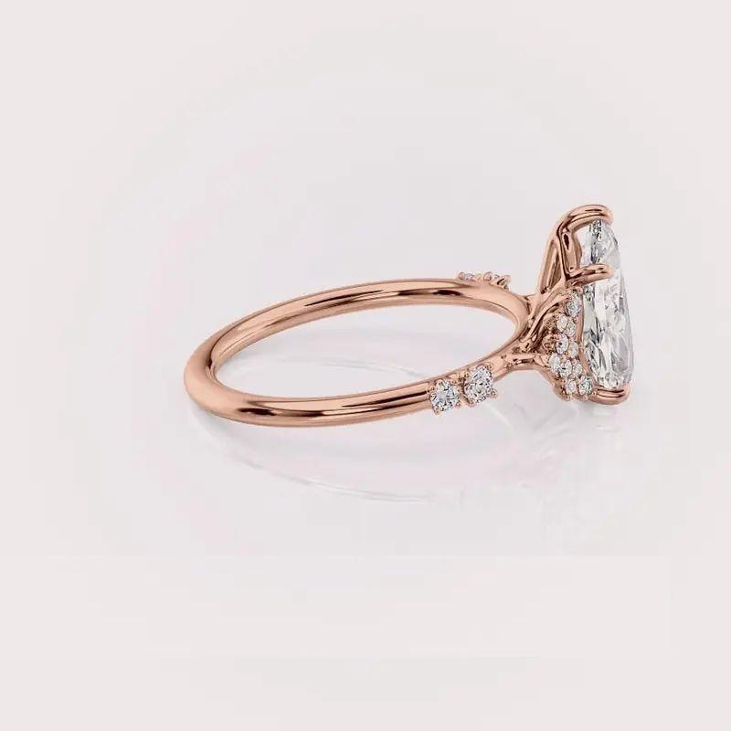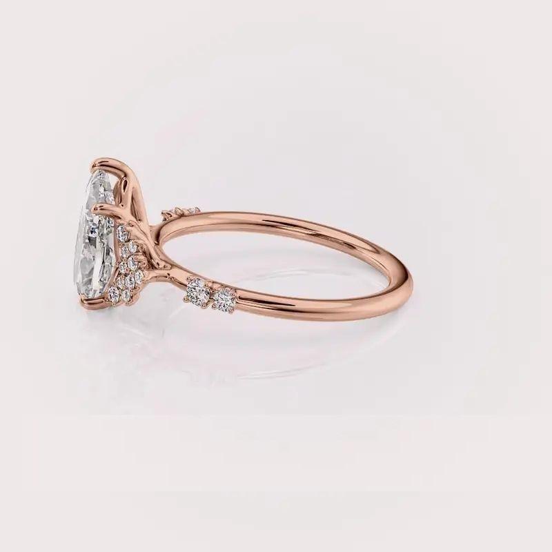 แหวนเพชรเม็ดเดี่ยวทรงลูกแพร์เพาะเลี้ยงในห้องปฏิบัติการ พร้อมใบรับรอง IGI ฝังเพชรแบบไมโครพาเว่ ชุบโรเดียม ทอง 9K สีเหลือง/สีโรสโกลด์/สีขาว