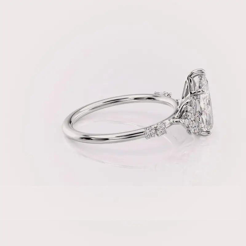 แหวนหมั้นเพชรทรงลูกแพร์เพาะเลี้ยงแบบโซลิแทร์ ตัวเรือนเงินแท้ 925
