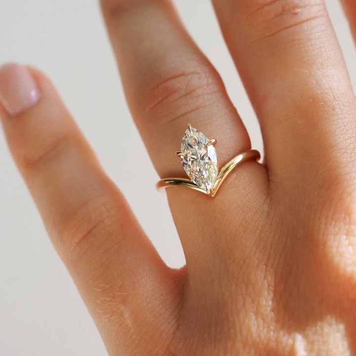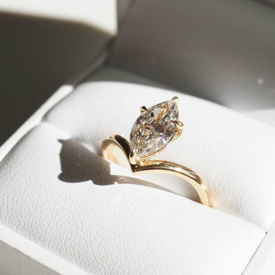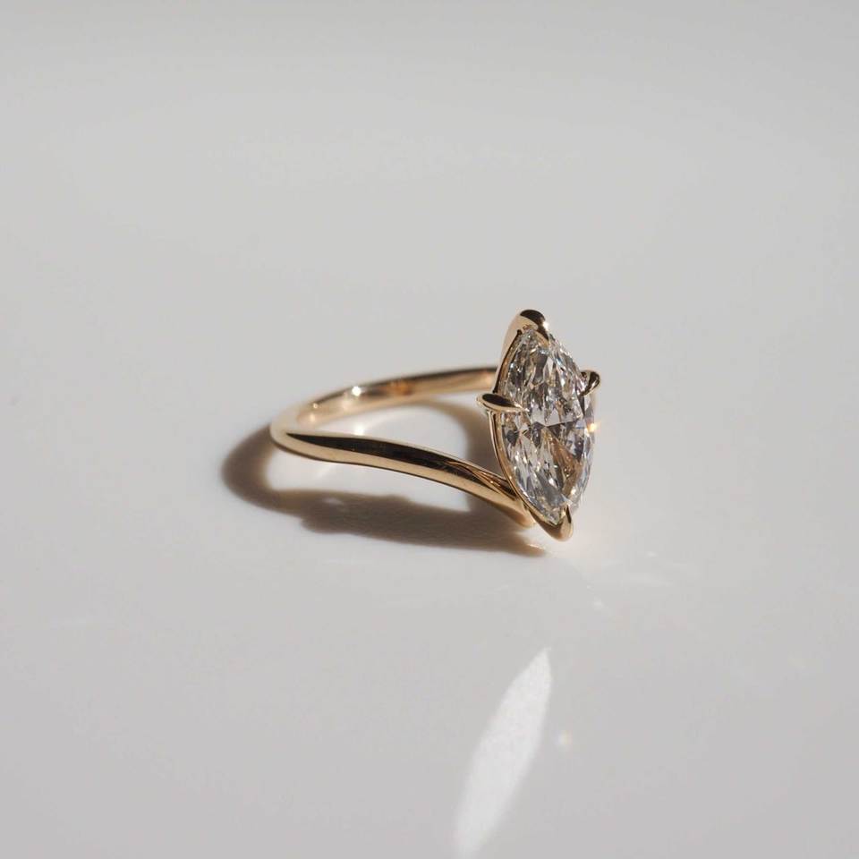 แหวนเพชรทรงมาร์คีส์เพาะเลี้ยงในห้องปฏิบัติการ ได้รับการรับรองจาก IGI แหวนเพชร CVD สำหรับหมั้น น้ำหนัก 1.60 กะรัต ทองคำสีเหลือง แหวนแต่งงานสำหรับเจ้าสาว