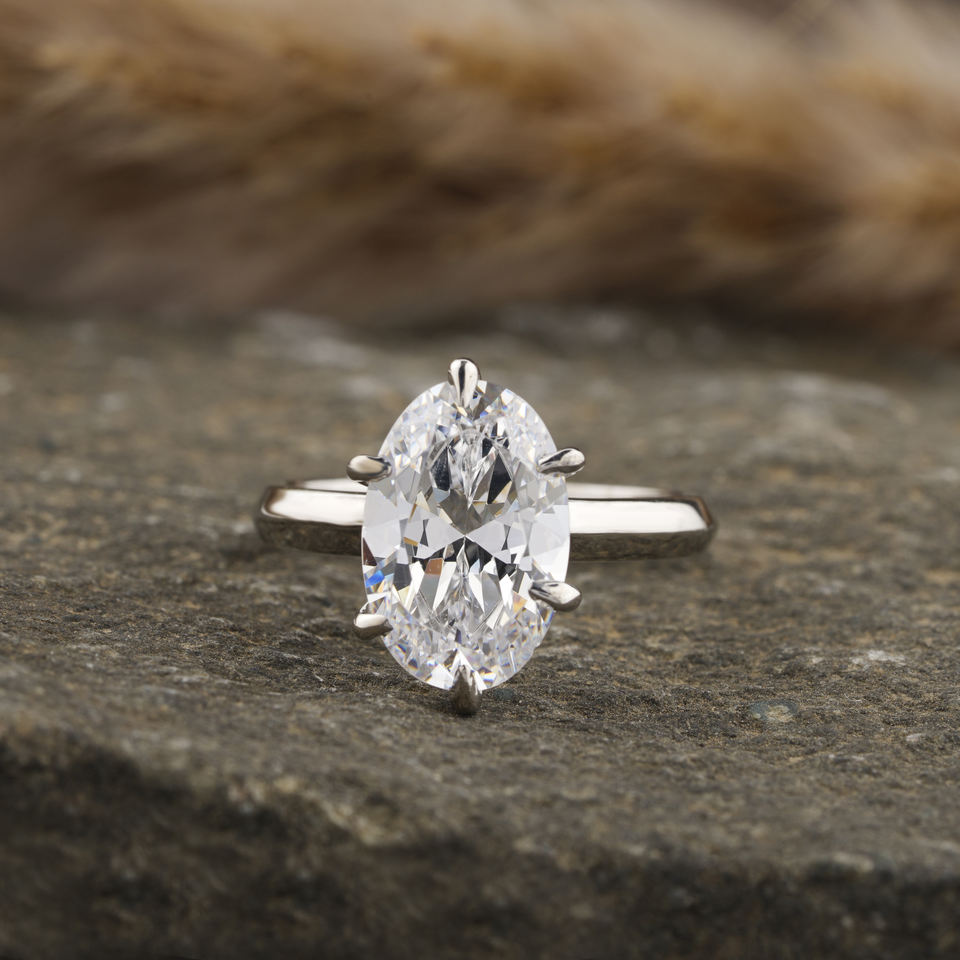 แหวนหมั้นเพชร14K ทรงรีดีไซน์หรูหราแหวนคลาสสิกประดับเพชรเพชรที่ตั้งจากห้องแล็บ
