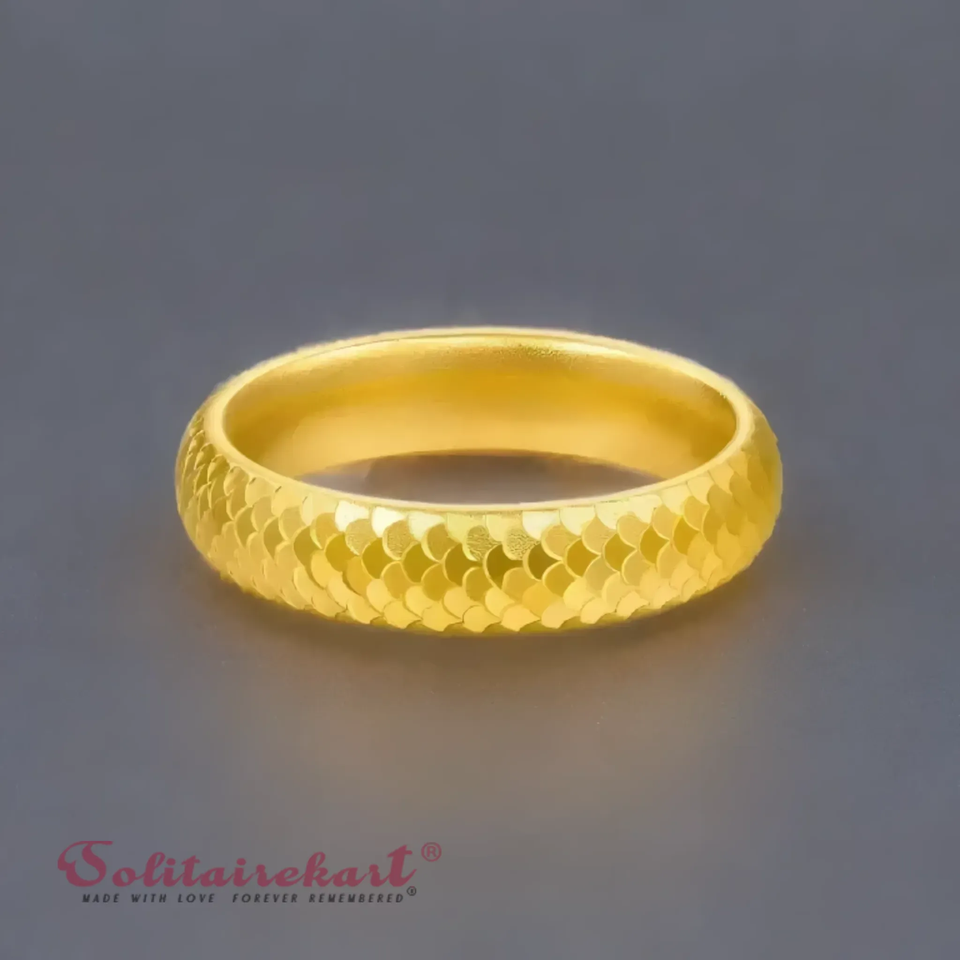 แหวน SolitaireKart ทองคำ 14K สีเหลืองทอง ลายพื้นผิว น้ำหนัก 2.21 กรัม ขนาด 5 ลวดลายเกล็ดปลาแบบพิเศษเพื่อความโดดเด่นและสง่างาม
